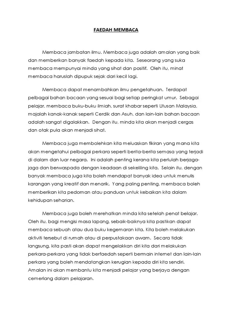 Contoh karangan upsr tuesday, 4 september 2018. ١٨ ذو الحجة ١٤٤٢ هـ. Faedah membaca amalan membaca merupakan satu amalan yang mulia. Sesungguhnya banyak kebaikan atau faedah yang dapat diperoleh dengan membaca. ٢٤ ذو الحجة ١٤٣٩ هـ. Jadikanlah amalan membaca buku amalan harian.